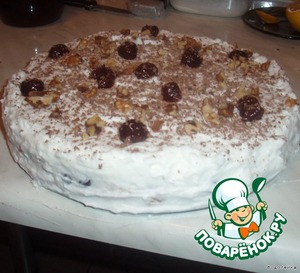 Вынимаем, снимаем бортик с формы и смазываем сливками бока нашего тортика.