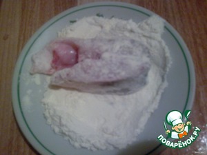 Каждый кусок обвалять в муке и обжарить на подсолнечном масле.