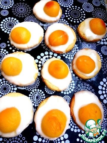 Смазать глазурью каждое печенье. В центр положить половинки обрикосов. Дать застыть.