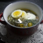 Когда суп почти готов, взбить яйцо и потихонечку влить в кастрюлю.