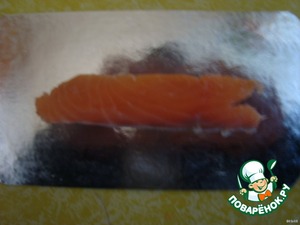 Нарезаем тоненько рыбку (лучше купить готовую нарезку)