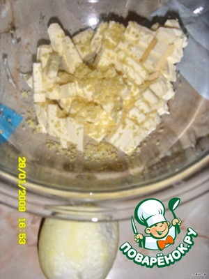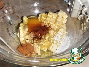 Сливочное масло нарезать мелкими кубиками, натереть цедру лимона