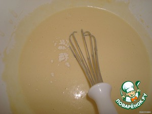 Когда начинка подостынет, добавить в неё, взбитый венчиком, яичный белок, перемешать. -