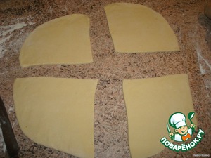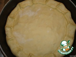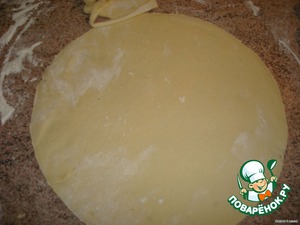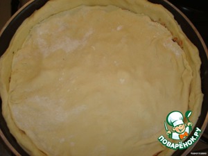 которой будет готовиться пирог, отложить его в сторону на присыпанную мукой поверхность. -