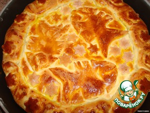 Фигурки выложить на пирог, смазать их желтком и выпекать до зарумянивания, в заранее разогретой до 180° духовке.
