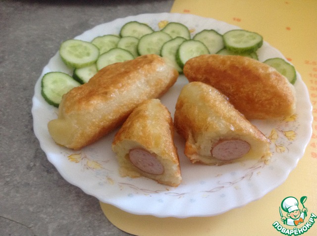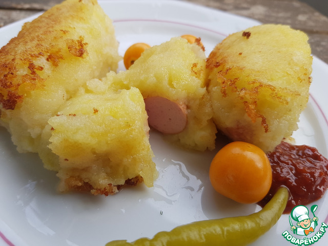 Это, те же зразы, только с сосиской. Для разнообразия можно, тем более, если нет дома мяса. Очень нравится детям.