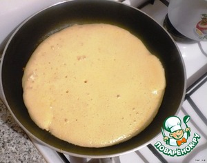 Выливаем его по 4 столовых ложки на сковородку и жарим под закрытой крышкой с двух сторон. Это быстро - надо следить, чтоб корж не подгорел!