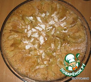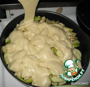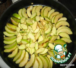 почистить и порезать яблоки, выложить на смазанную маслом форму