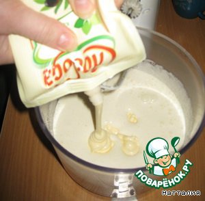 добавляем муку смешанную с содой. тесто должно быть, как сметана.