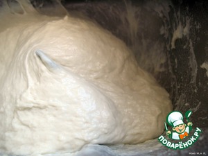Готовое тесто выложить в смазанную маслом емкость и накрыть пленкой. Оставить на час-полтора для удвоения.