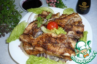 Берем филе, посыпаем лучком и смазываем с двух сторон нашим соусом. И оставляем рыбку примерно часа на 3 - мариноваться.
