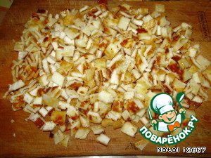 Яичную смесь нарезать мелко.