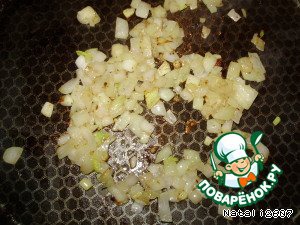 Лук репчатый почистить, нарезать мелко кубиком и на небольшом количестве растительного масла обжарить до золотистого цвета.