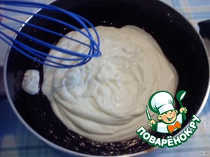 Как только эта смесь начнет загустевать, взбить сливки и аккуратно добавить в смесь.