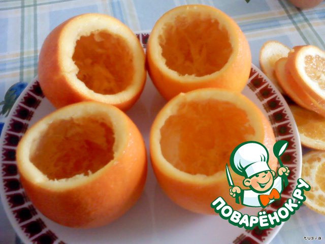 Вынуть из апельсина всю внутреньюю часть, чтобы осталась только кожурка в виде чашечки -