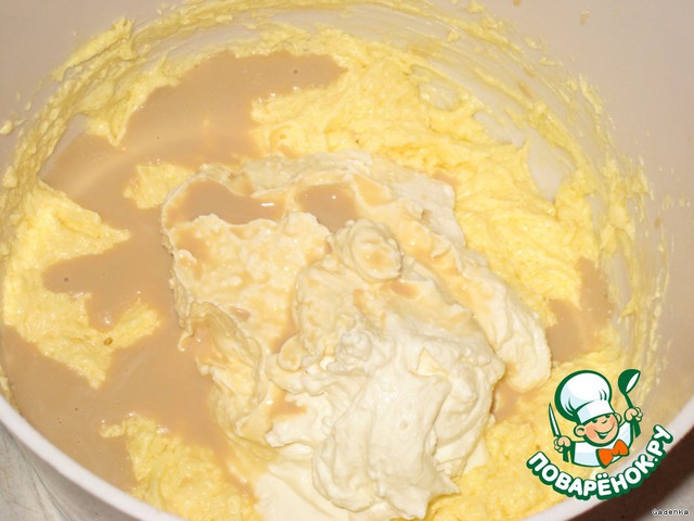Добавить творожную массу и ликер, взбить около 1 минуты.