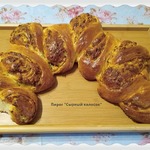 Люблю выходные, когда можно вкусно и с размахом поесть ))) Вкусное, мягкое и нежное дрожжевое тесто на йогурте с не менее нежной начинкой из сыров и вареных яиц с ароматом свежей зелени. Все так вкусно и воздушно, что не смотря на большой размер, колосок улетает быстро и незаметно. Хороша такая подача на стол тем, что не надо ничего резать и давить ножом утонченную и нежную структуру дрожжевой выпечки, а просто отламывать порционный кусочек. Так приятно - свежая, теплая выпечка в выходной день.