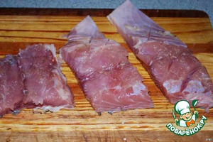 Карпа режим на порционные кусочки. Так-как филе у меня было толстенькое, то прорезаем его ножом в виде решетки (для лучшего прожаривания).