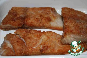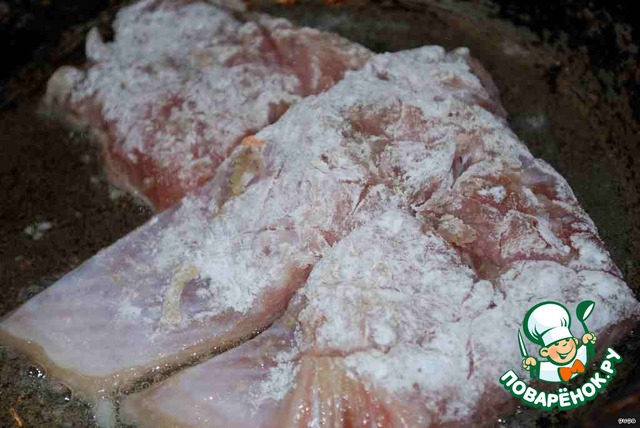 Обмакиваем в смесь крахмала с мукой и обжариваем на раскаленной сковороде.