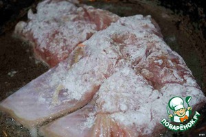 Филе карп ( у меня хвостовая часть) натереть солью и чесноком.Дать настояться 5-10 минут.