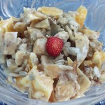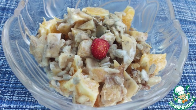 Апельсин нарезать кусочками. Сыр натереть на крупной терке. Все соединить, заправить майонезом и перемешать.