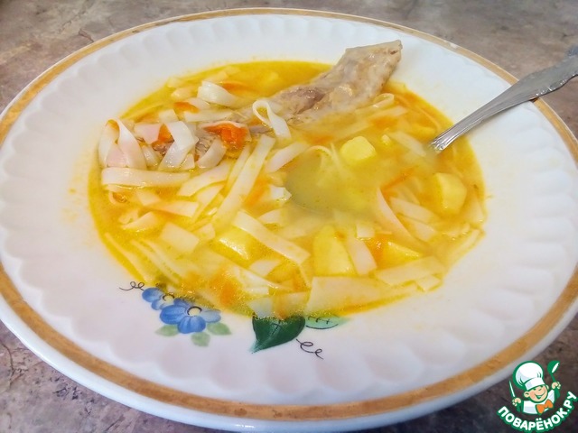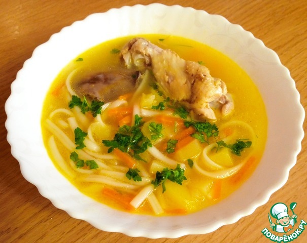 Вкусный сытный суп с рисовой лапшой на курином бульоне по заказу дочурки :-)