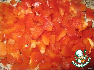 • У перца удалить семена и плодоножку, нарезать кубиками.