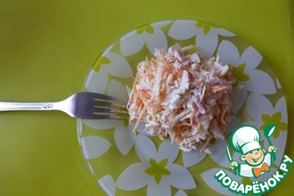 Сочетание продуктов хоть и странное, но идеально подходящее! Получился очень нежный и необычный салатик.
