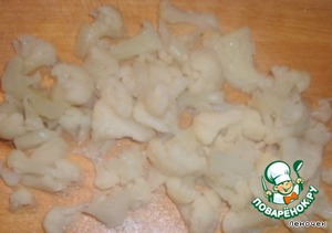Капусту разморозить, отварить в подсоленной воде, остудить, разобрать на соцветия.