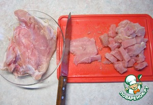 Филе нарезать небольшими кусочками.