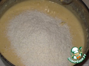 Затем добавить 60-80 г кокосовой стружки, перемешать.