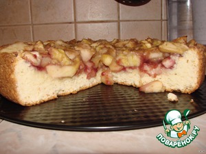 Тесто выкладываем в форму с бортиками, смазываем вареньем, посыпаем панировочными сухарями (они впитывают яблочный сок) и кладем нашу начинку