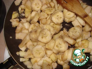 Обжариваем бананы и яблоки и добавляем какао. Его тоже необязательно, но так появляется шоколадная нотка