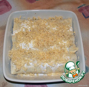 • Кладем отваренную пластинку на нелипучую поверхность, промазываем сметаной.
