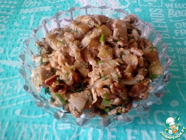 Очень вкусный салатик, сразу даже не подумаещь, что это баклажаны, а не грибы.