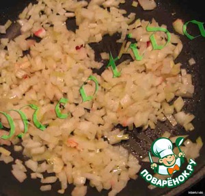 Обжариваем на разогретой сковородке лучок до золотистого цвета