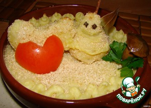Слепите нужные фигурки... с помощью кисточки обмажьте белком.. обсыпьте сухарями