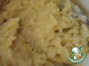 Когда картофель остыл, разомните вилкой... посолите... и смешайте с желтком -