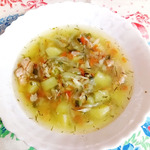 И вместе с нарезанными овощами бросаем в суп. Солим, перчим.