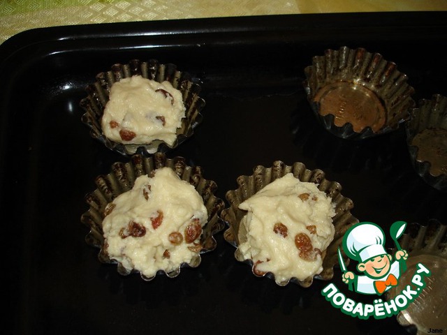 Разложить по формочкам и запекать в духовке 30 минут при температуре 200 С.