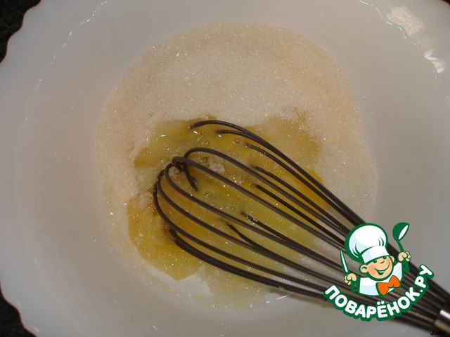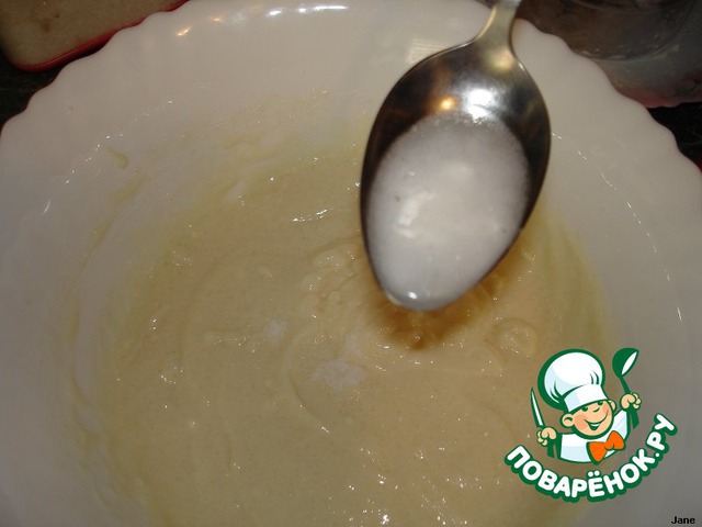 К смеси добавить ванилин, соду, гашеную уксусом.
