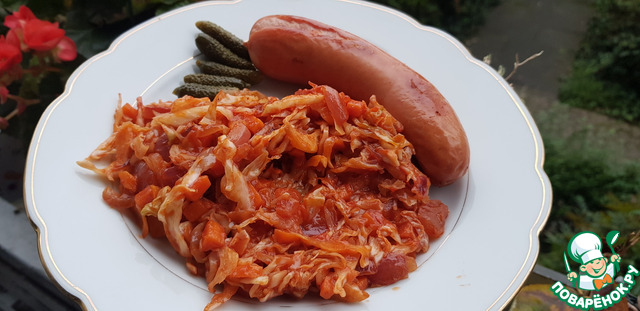 а мы с мужем любим тушеную острую капусточку с сосисками, ьушеными в томате..под пиво ...а у тебя -получилось в сто раз вкуснее!!!
