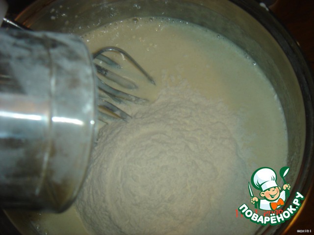 Погасить соду в сметане, добавить во взбитое яйцо вместе с мукой |