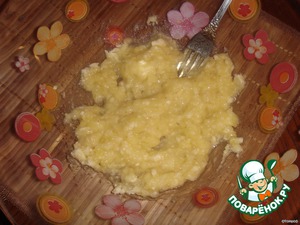 Добавить в них 2 яйца, 1 ст. сахара, 1 пак. разрыхлителя, 1 пак. ванилина, масло сливочное 100 гр.