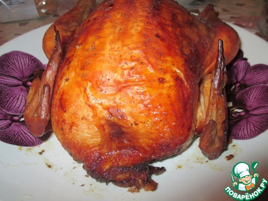 Теперь ставим противень в разогретую духовку до 190-200 гр Ц и запекаем около часа, чтобы птичка получилась румяной.