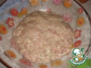 Сделать фарш: Свинина 700 гр, 1 луковица, 3 зуб. чеснока, хлеб 100 гр.