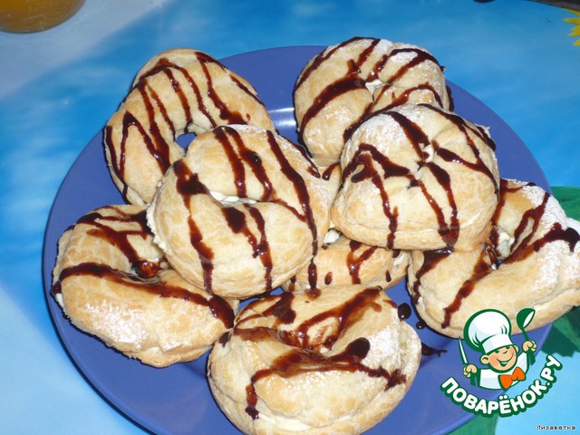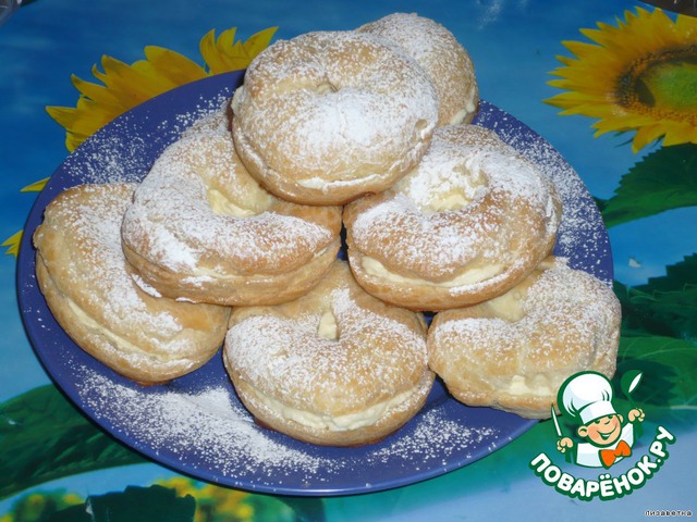 Давно собиралась приготовить эти вкусные пирожные!!! Наконец, приготовила!! Крем получился очень нежным - как надо, а тесто воздушным! Рецепт взят с другого сайта и, как уверял автор, по этому рецепту приготовлены кольца, которые продаются в магазине! Судите сами.!! Только я внесла своe изменение: полила пирожные глазурью! На фото только половина от получившегося!