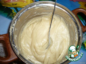 По одному вбить яйца, хорошо вымешивая тесто после каждого яйца.