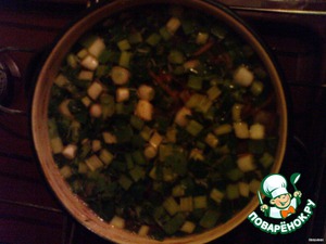 Даем борщу покипеть минуты две, чтобы он вобрал в себя аромат и вкус овощей и зелени.