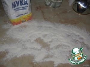 Когда подойдёт, присыпать мукой рабочую поверхность. -